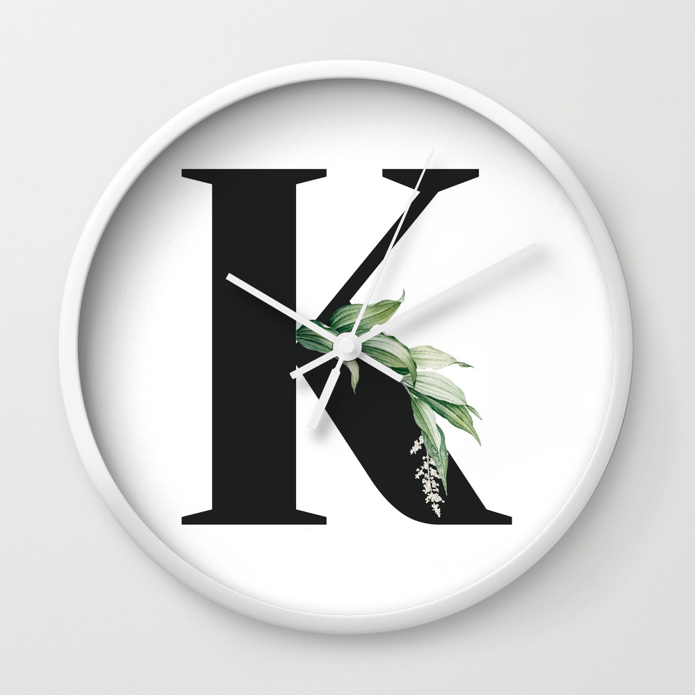 Letter K Initial Floral Monogram Black And White Poster Wall Clock By Standard Prints Posters Society6